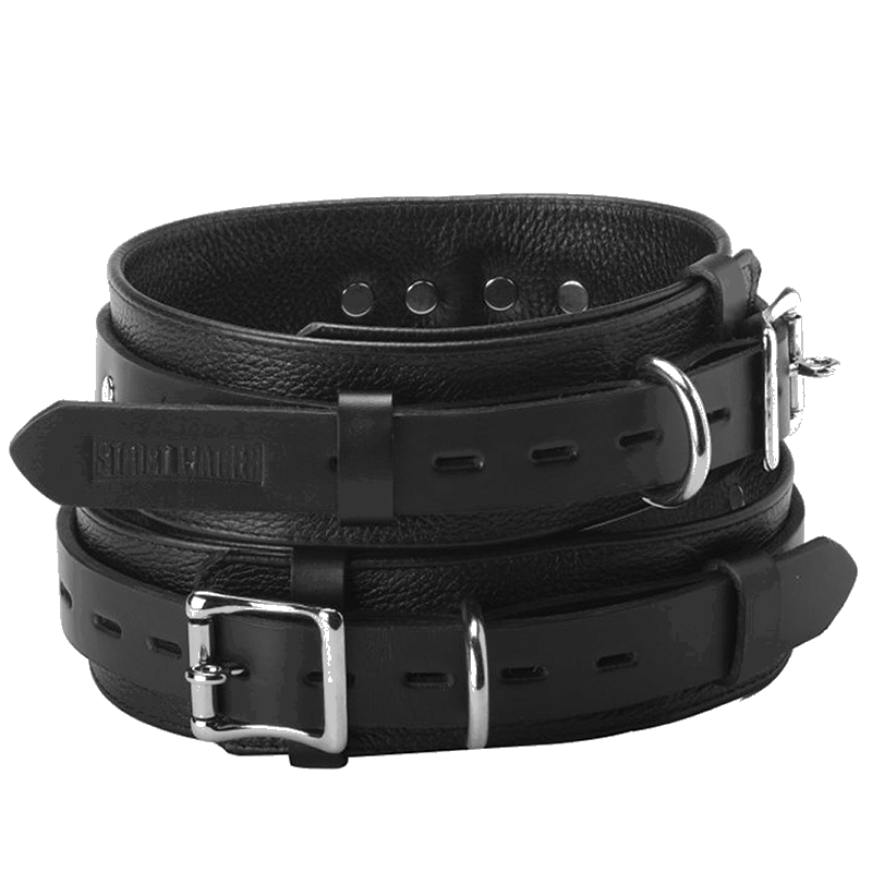 TheDeluxe Leather Locking Thigh Cuffs are used to provide additional restraint where needed. They can be used to attach wrist cuffs – ankle cuffs or to anything else. Thigh cuff circumference 15 to 23 inches.