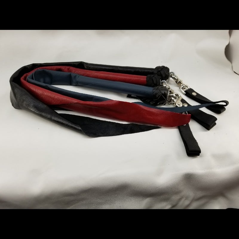 These Mini Dragontails have the black leather loops for your fingers. Each has two loops for two fingers on each mini tail.  Buy a matching pair to enhance your play time. 4 week turn around time from time of order to delivery, each piece is custom made per order.